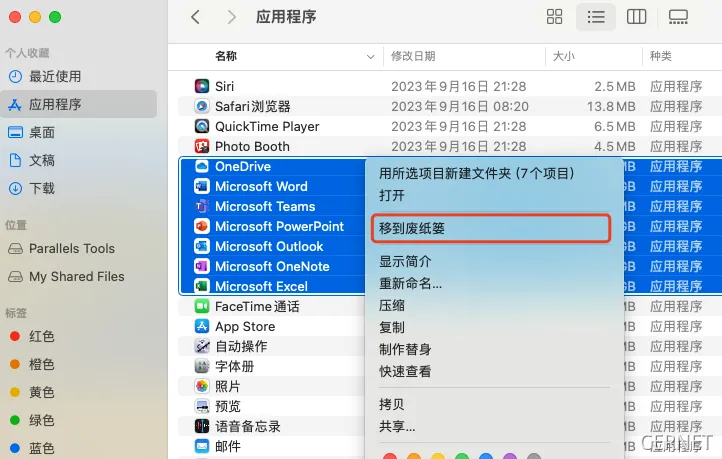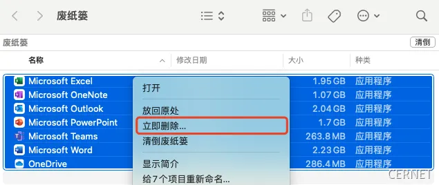 移除后,务必删除垃圾篓里的Office应用程序,否则会导致安装后无法正常使用