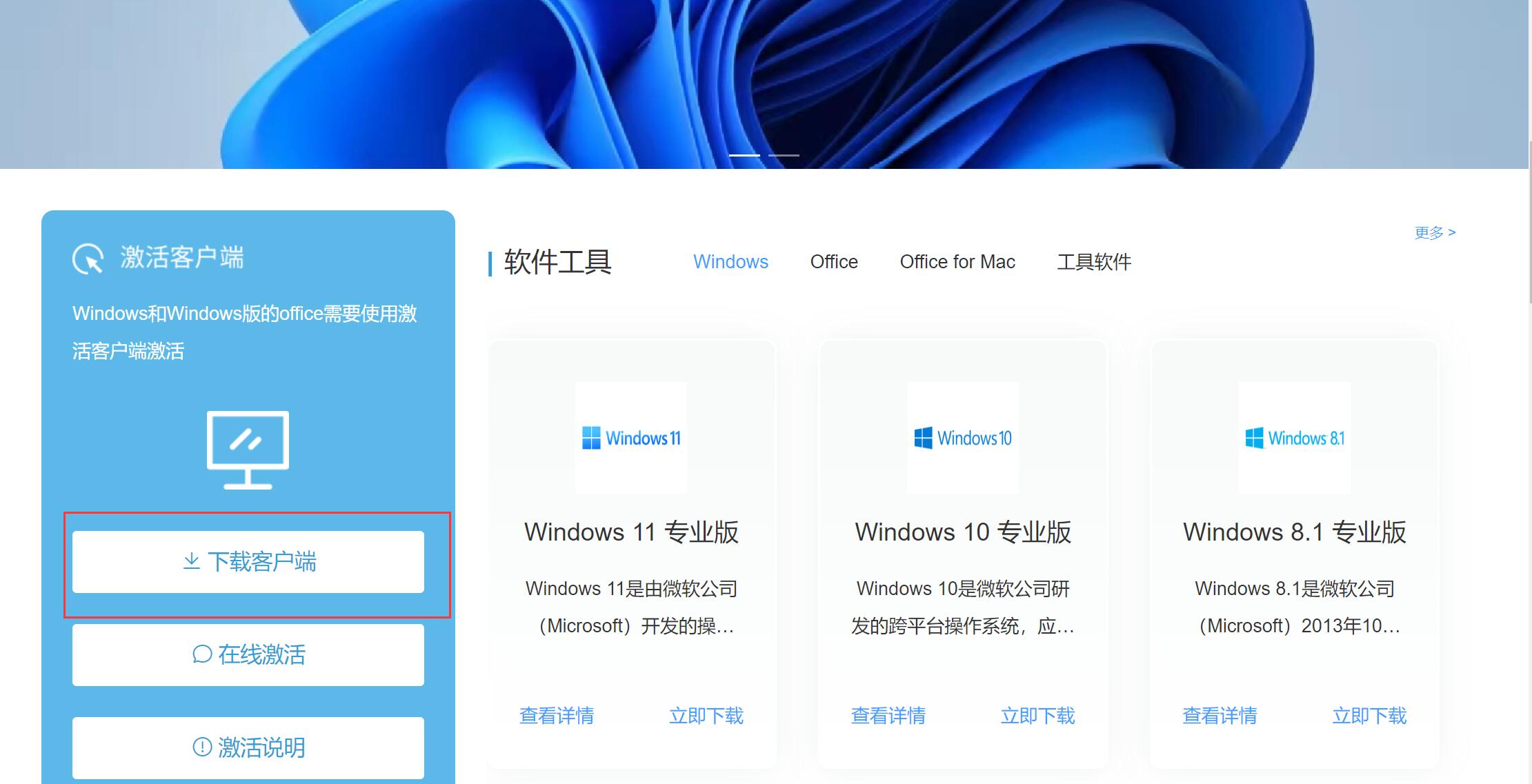 1) 访问平台首页,点击页面右下角的“下载最新激活客户端”链接。